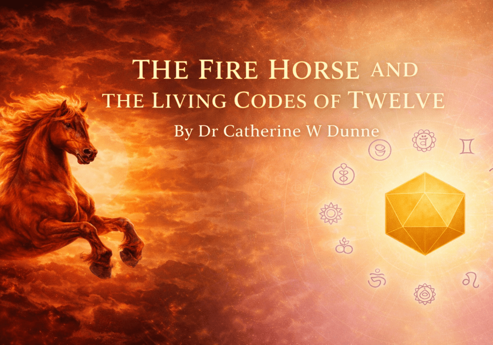 In meinem Buch Twelve: The Sacred Code of Consciousness beschreibe ich die grundlegende Architektur, durch die sich Lebenskraft organisiert — die heilige Struktur, welche bestimmt, wie Energie sich bewegt, entwickelt und verkörpert. Das Jahr des Feuerpferdes offenbart diese Architektur in lebendiger Bewegung. Was zuvor verstanden wurde, wird nun erfahren.