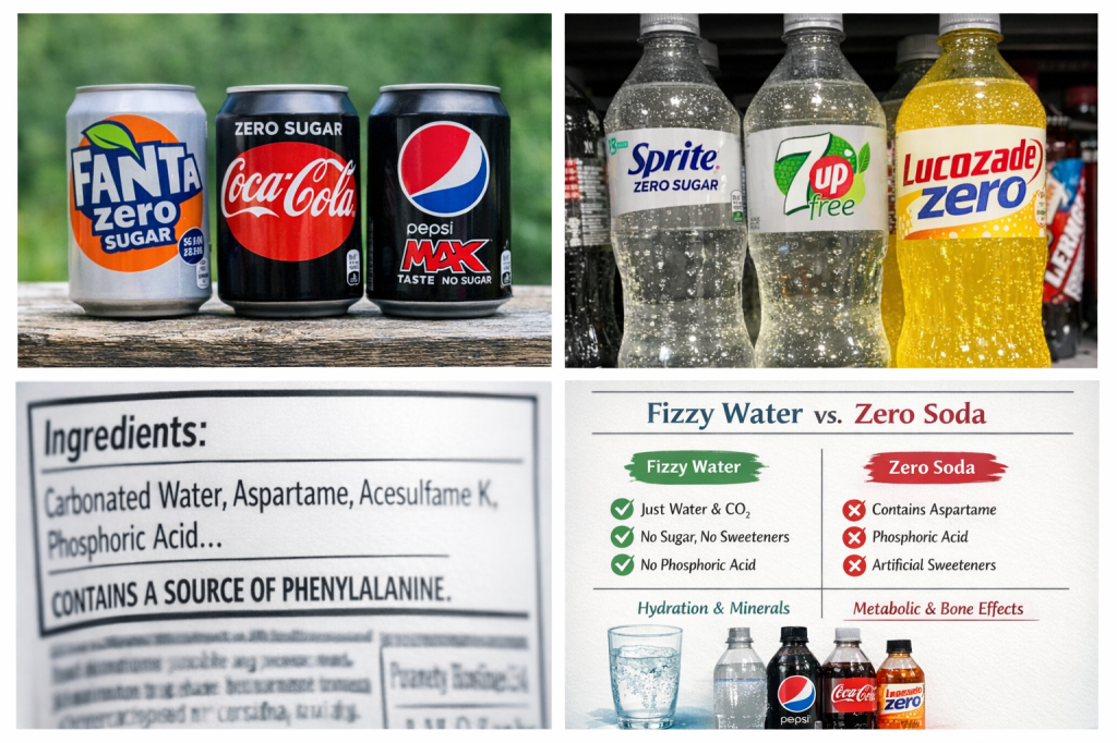 What Are “Zero” Sodas? “Zero” or diet sodas remove sugar and calories, replacing them with artificial sweeteners and acids to preserve sweetness and flavour. They typically contain: